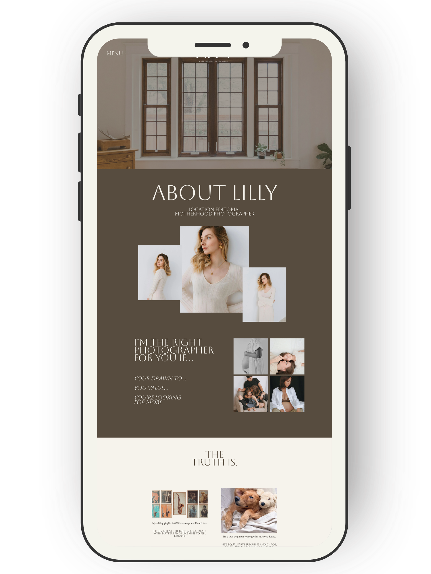 Easter Lilly was created for family and motherhood photographers This template is photography-forward, meaning once you add your images, your work becomes the focal point in a classic, elevated way. It gives you that high-end presence while keeping warmth and connection at the center.