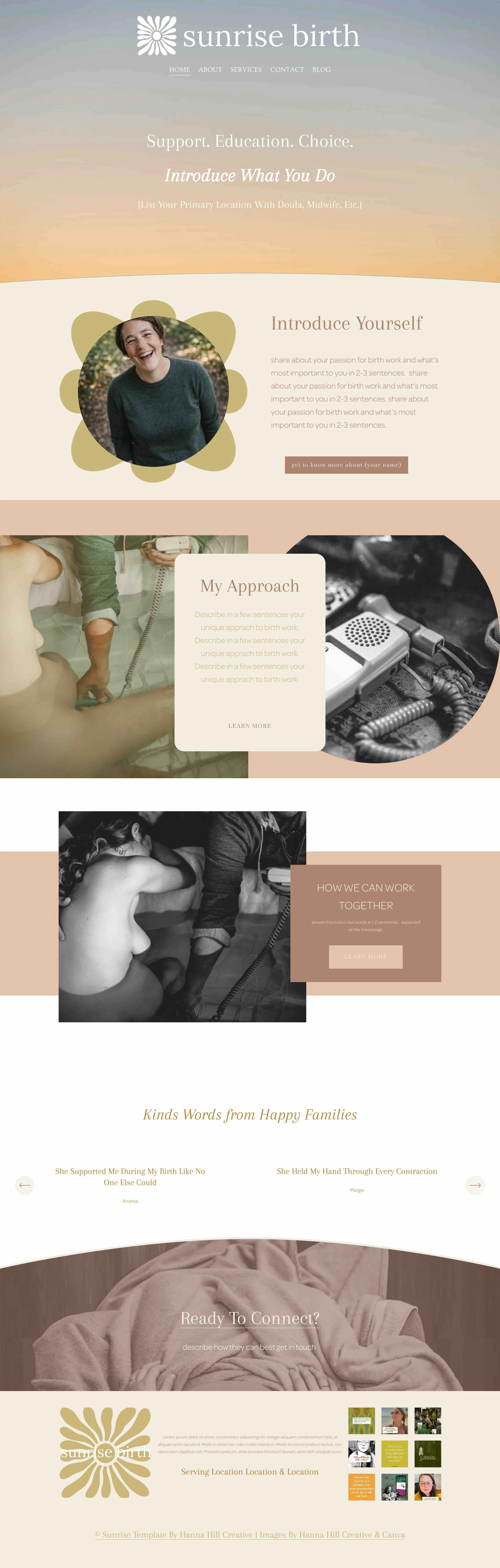 ❝ I purchased one of Hanna's templates and I just love how easy it was to personalize! I appreciated the prompts so I knew what I needed to focus on writing in the specific spots throughout the website. I've seen other templates that just have the random text so you really have no focus, but she adds birth specific titles and "write about or talk about (subject)..." which were so helpful! It really only took me a couple days to be able to go live with my website. Anytime I had questions Hanna was always quick to respond with helpful links and insight. Thank you Hanna! I so appreciate you taking the time to put this together and helping me when I got stuck.❞